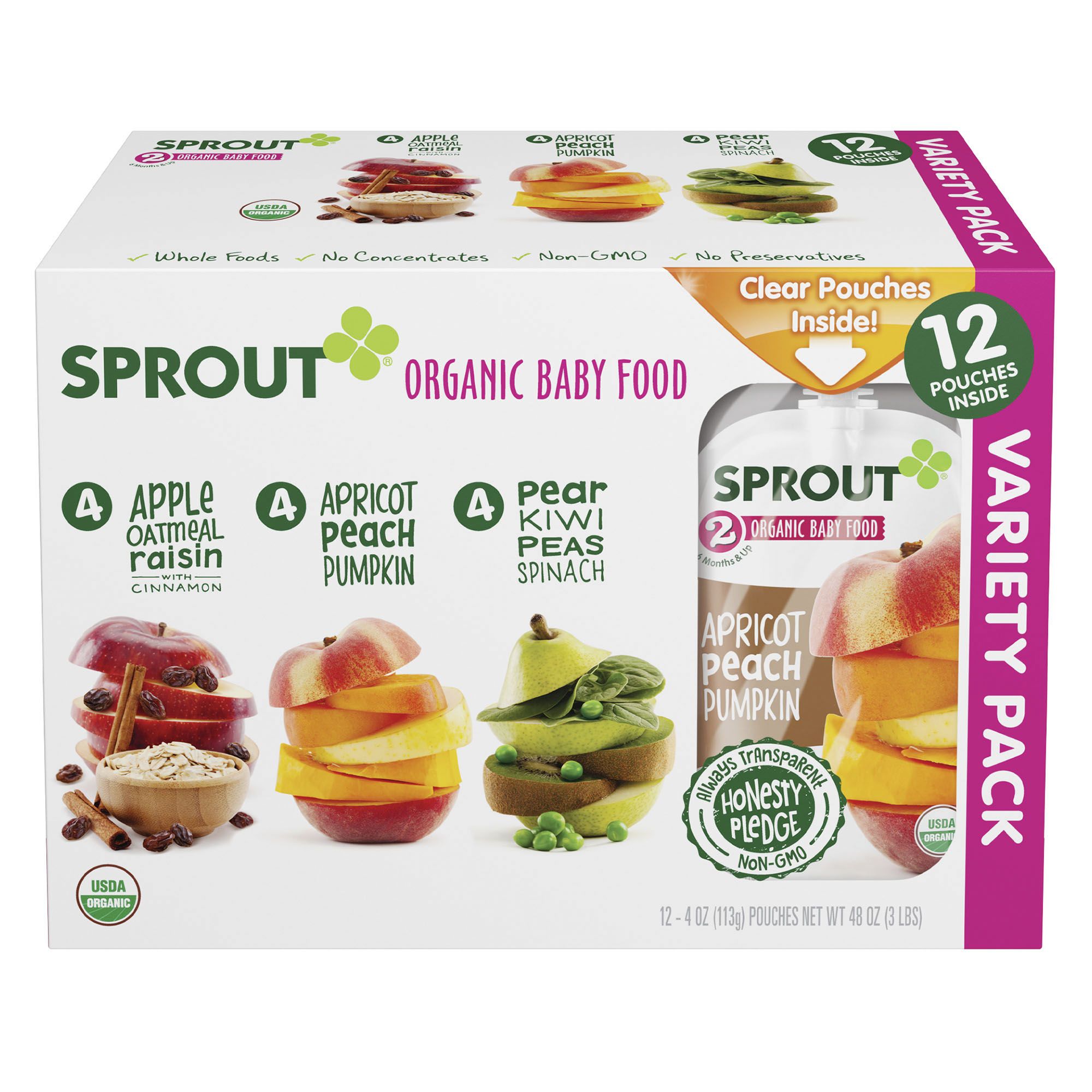 Sprout Baby Food Variety Pack 12 ct. Non-GMO Gluten Free And Soy Free.