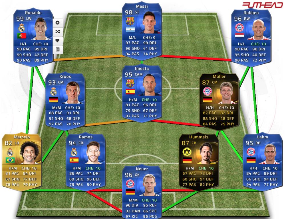Choose your favorite players and take your team. 80 AVG 22 Golds 3 Silvers 2 Bronzes 0 IFs. The Ultimate Team YouTube craze with fans opening packs and screaming in their moms house when they get an in-form 98 rated Cristiano Ronaldo started with FIFA 12. A FIFA 15 Ultimate Team Squad - join the discussion or make a squad of your own. 74 AVG 22 Golds 4 Silvers 6 Bronzes 0 IFs. FIFA 15s Ultimate Team introduced a new feature in which users can sign loan players for a limited duration of matchesAnother new feature is The Concept Squad where players are given access to the games database and can create a dream squad. You can find them here.