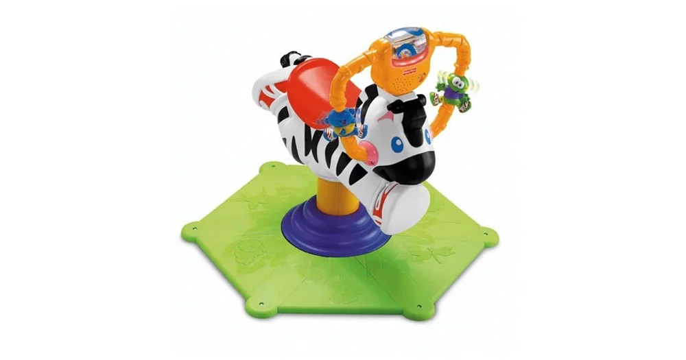 Sure to become every youngsters favorite toy five uplifting songs play as the child bounces and turns 360 degrees. Fisher Price Bounce Spin Zebra. Ideal for ages 12 to 36 months this lively zebra enhances motor skills as the child learns coordination balance and how to climb on and off.