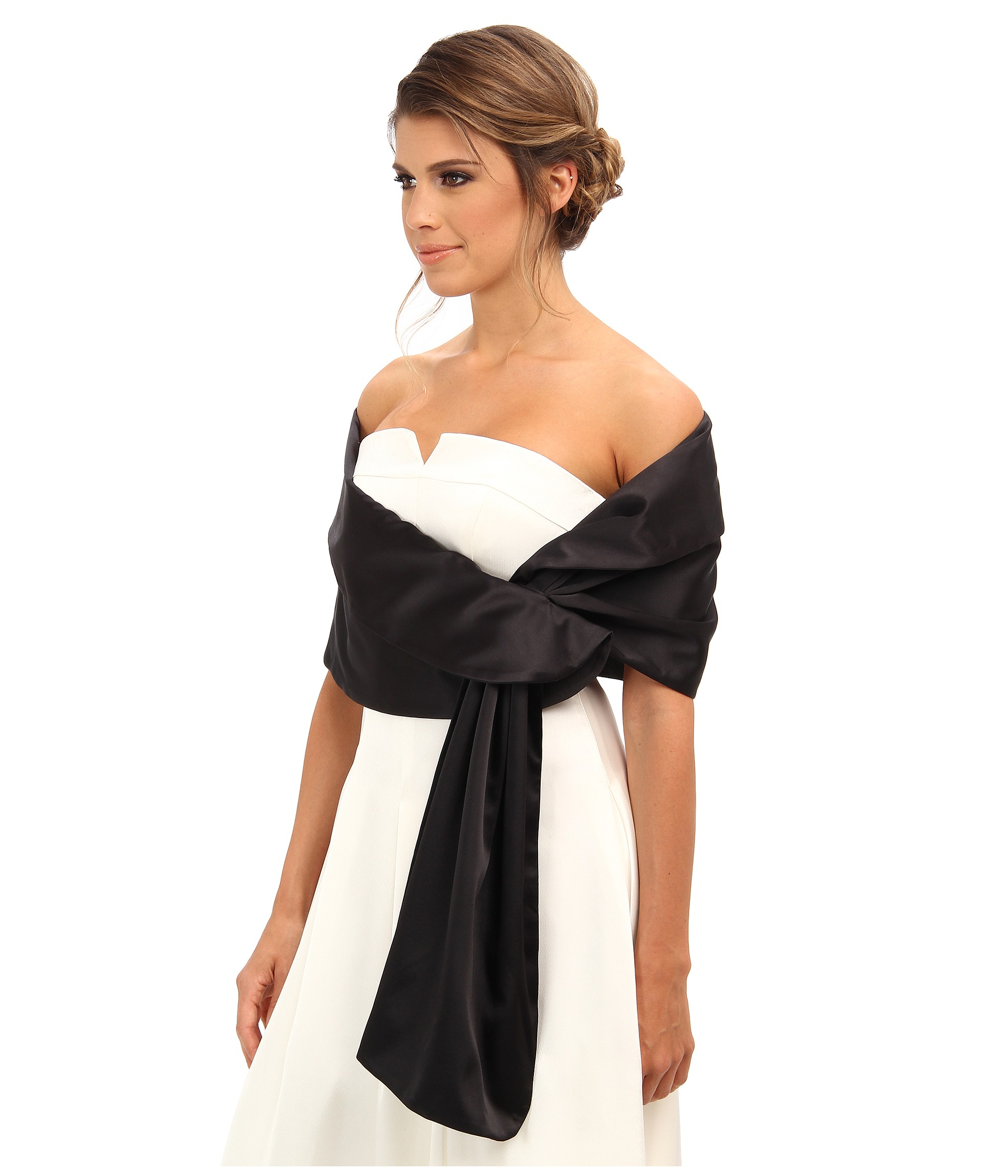 Adrianna Papell Womens Satin Pull Through Shawl Wrap Black O S Amazon Ca Clothing Shoes Accessories