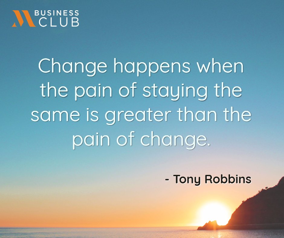 Change happens when the pain of staying the same is greater than the pain of change is published by jesscio. Draw on self-talk support systems or any other means you can find to increase your resolve. And the goal is simple. Change happens when the pain of staying the same is greater than the pain of change. The formula is change happens when the cost of the status quo is greater than the risk of change. Change happens when the pain of staying the same is greater than the pain of change Tony Robbins Comes down to dollars and sense really. Youll discover quotes by Buddha Lao Tzu Gandhi and more.